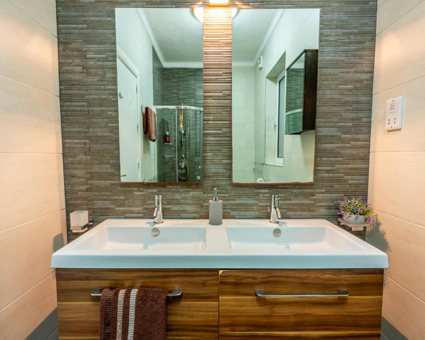 Three-Bedroom Apartment. This spacious apartment is comprised of 3 bedrooms, kitchen, a terrace and 2 bathrooms with a bath. The well-fitted kitchen features a refrigerator, a dishwasher, kitchenware and an oven. The air-conditioned apartment offers a flat-screen TV with streaming services, a washing machine, a tea and coffee maker, a dining area as well as sea views. The unit offers 4 beds.